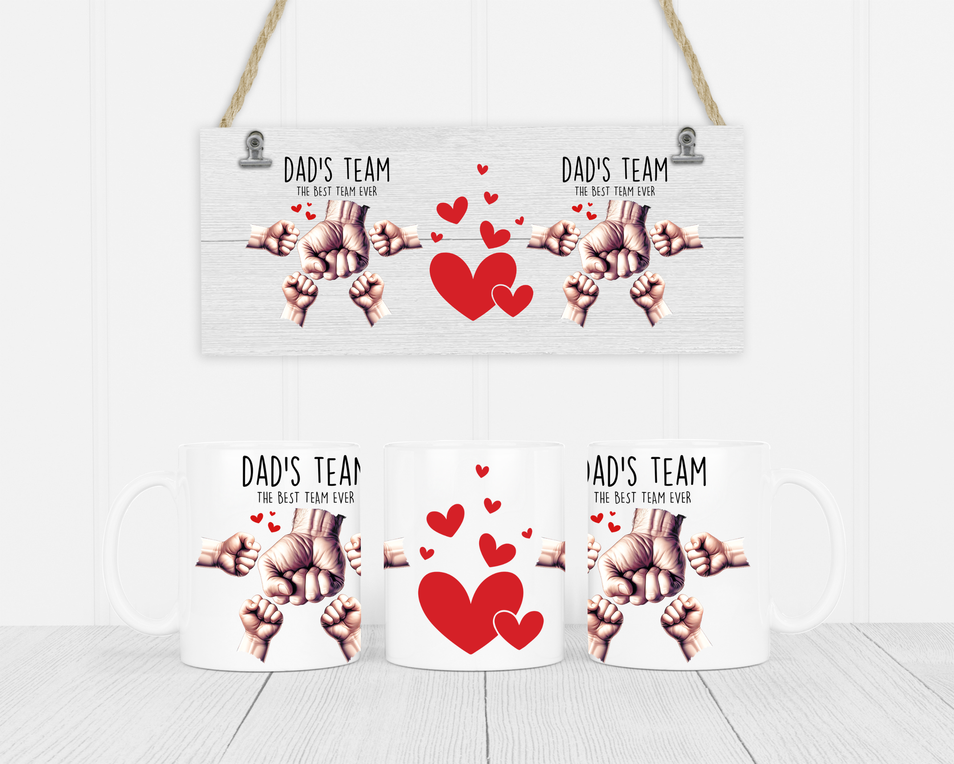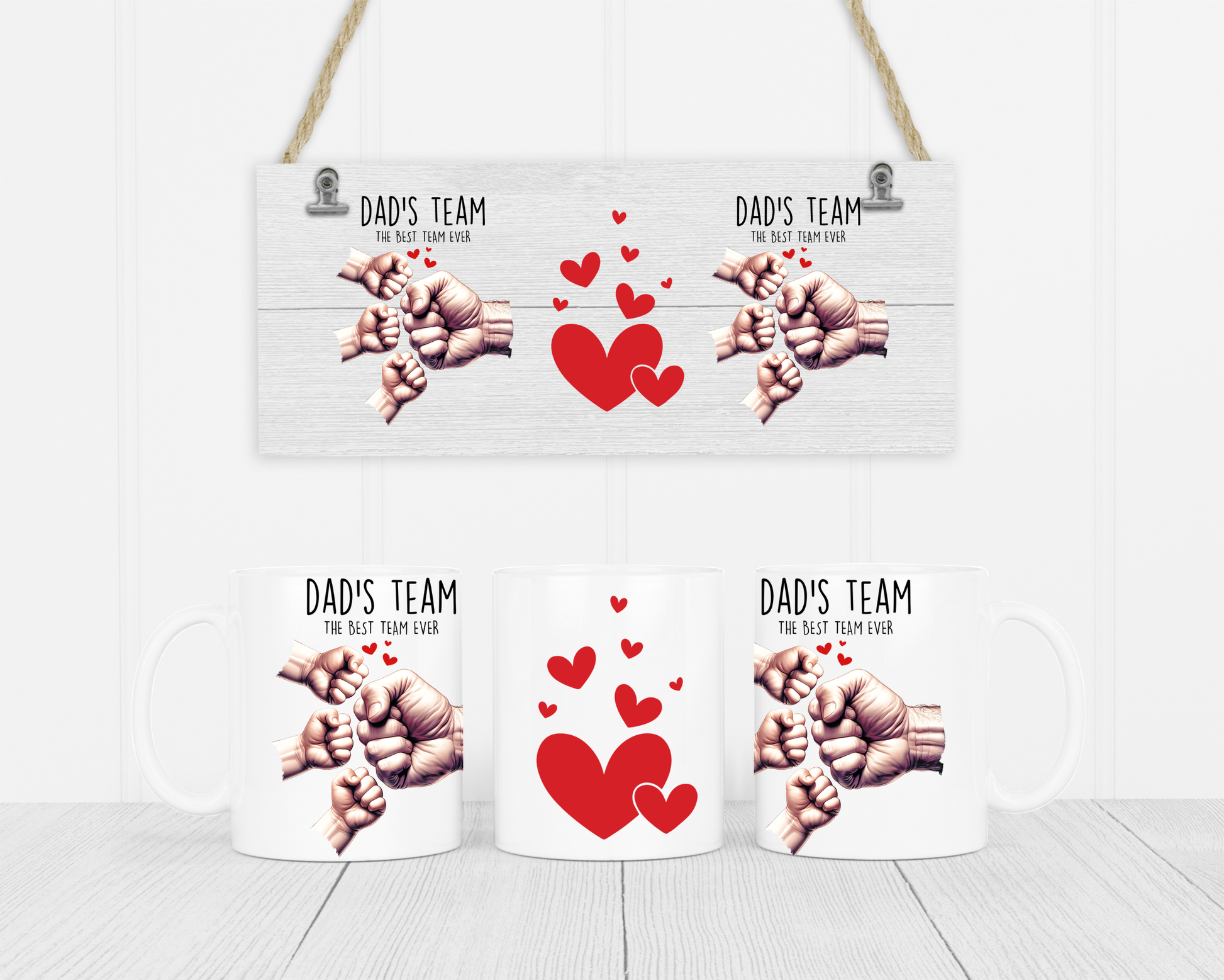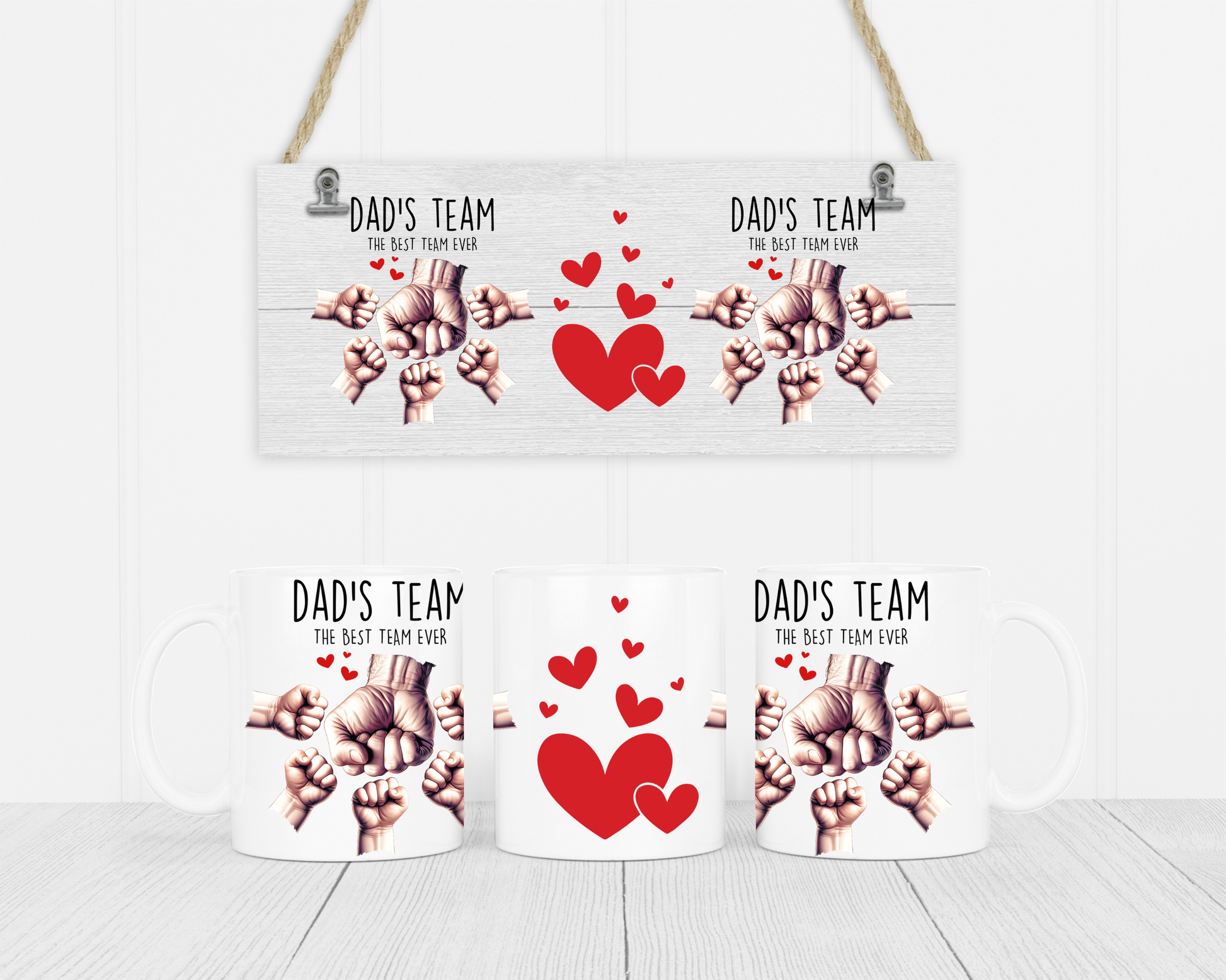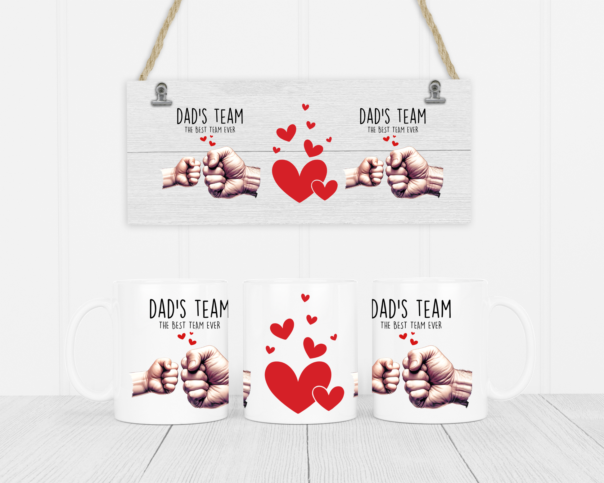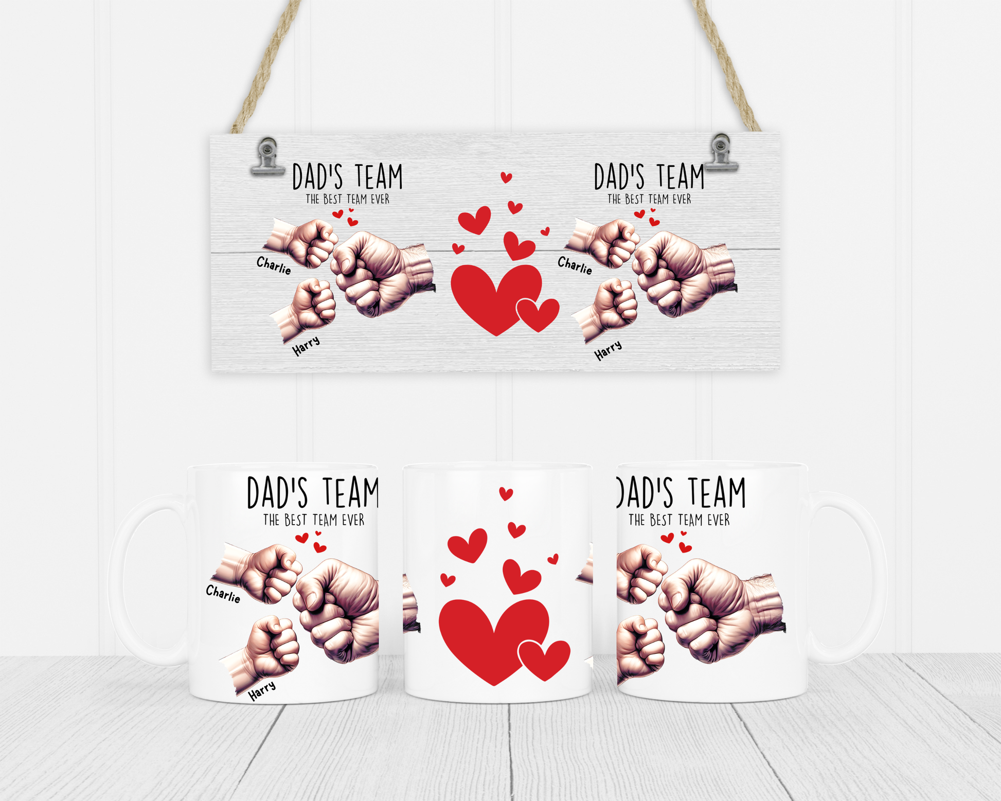 This heartwarming mug features a “Dad’s Team” design with fist bumps representing each member of the family — a perfect way to celebrate your team.